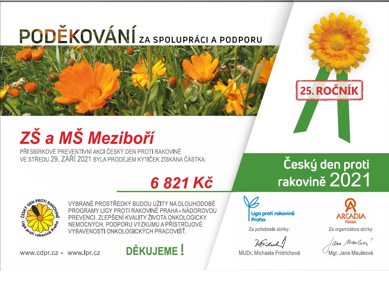 Žáci se znovu zapojili do sbírkové akce Český den proti rakovině.
